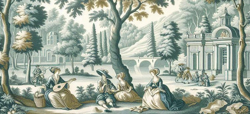 Afficher tous les détailsPapier peint art déco | Style toile de Jouy arbre et cour du roi
