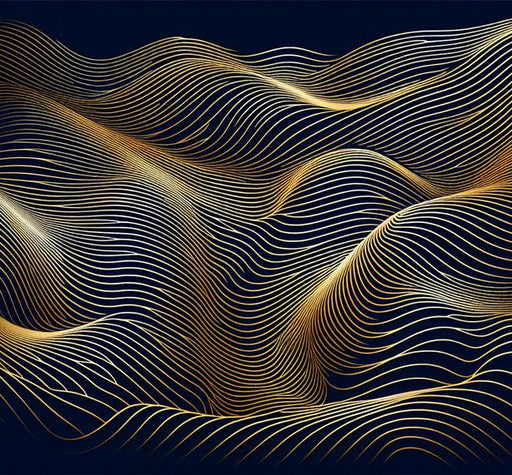 Afficher tous les détailsPapier peint art déco | Vague abstraite dorée sur fond bleu nuit