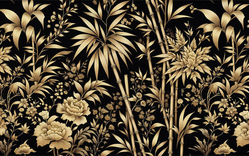 Afficher tous les détailsPapier peint noir et or | Bambou et fleurs vintages