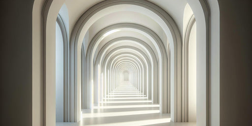 Afficher tous les détailsPapier peint trompe l'œil | Allée d'arche blanches avec effet de profondeur