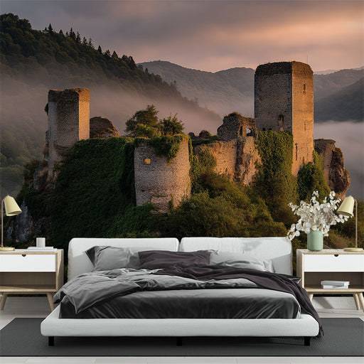 Papier peint château médiéval | Scène épique au coucher du soleil