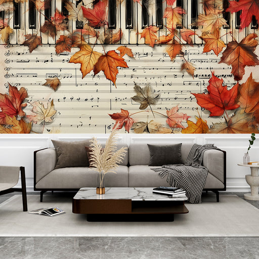 Afficher tous les détailsCe papier peint automnal combine l'élégance de la musique avec la beauté de l'automne. Les touches de piano noir et blanc émergent parmi les partit...