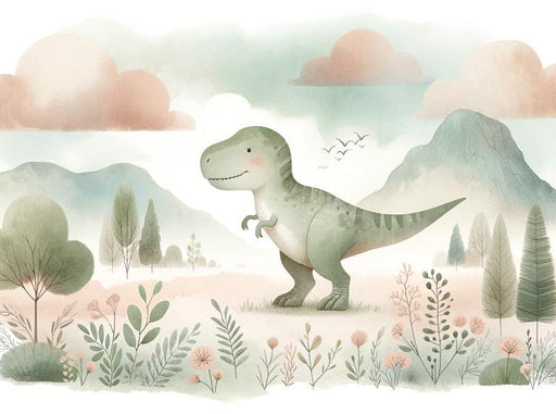 LePapierPeintLe papier peint Bébé T-rex Mignon au Milieu des Montagnes offre une escapade charmante dans un monde où l'aventure et la douceur se rejoignent. Ce ...