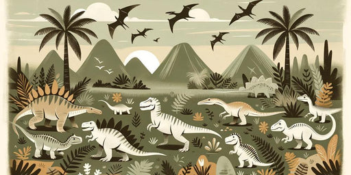 LePapierPeintNotre papier peint Dinosaure Illustration Champ de Dinosaures vous plonge dans un univers préhistorique fascinant, où les majestueux dinosaures par...