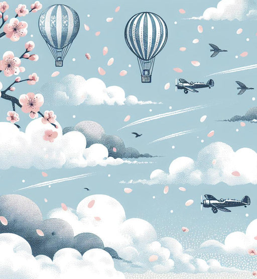 Afficher tous les détailsPapier peint montgolfière | Avions, cerisiers roses et nuages sur fond bleu