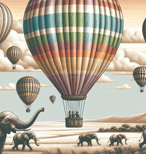 Afficher tous les détailsPapier peint montgolfière | Éléphants volant au-dessus des plaines