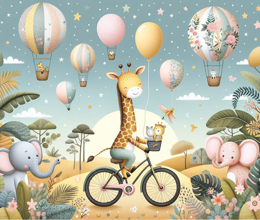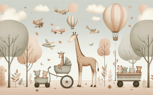 Papier peint montgolfière | Girafes, avions et forêt pour enfant