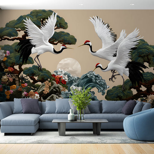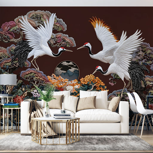 Papier peint grues et nature | Designs élégants avec motifs traditionnels