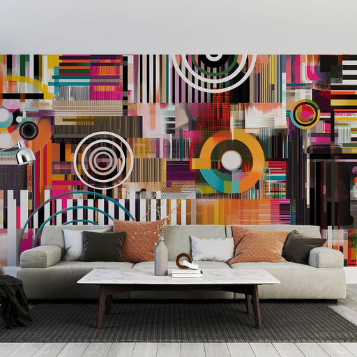 Afficher tous les détailsCe papier peint géométrique abstrait offre un mélange vibrant et riche de couleurs et de formes. Avec ses motifs circulaires et rectangulaires, il ...