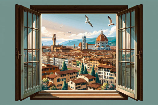 Papier peint trompe l'œil | Fenêtre ouverte sur une représentation de la ville de Florence