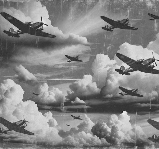 Ce Papier peint avion capture l'intensité dramatique du ciel en guerre, avec des avions de combat historiques en plein affrontement parmi les nuage...