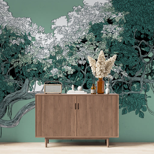 Ce papier peint captivant présente un magnifique design de vignes sinueuses et de feuillage luxuriant, fusionnant des teintes de vert avec des touc...