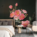 Papier peint floral | Fleurs roses sur fond sombre