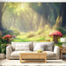 Transformez votre espace avec notre papier peint forêt enchantée, mettant en valeur des champignons magiques aux couleurs vives et des rayons de soleil filtrant à travers les arbres. Cette scène idyllique apporte une touche de féérie et de sérénité à n'importe quelle pièce.