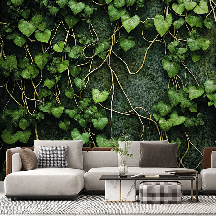 Papier peint lierre | Feuilles vertes luxuriantes avec tiges dorées