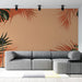 Papier peint feuillage | Feuilles verdoyantes avec fond orange et terracotta