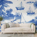Invitez l'évasion et le style tropical avec notre papier peint tropical motif voile et palmiers en teinte bleue. Ce design élégant présente des voiliers naviguant paisiblement entre des palmiers exotiques, créant une scène apaisante et raffinée qui convient parfaitement à une décoration intérieure inspirée des vacances et de la mer.
