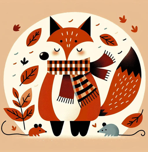 LePapierPeintCe Papier peint renard plein de charme représente un renard coquet enveloppé d'une écharpe à carreaux, une image accueillante qui évoque la chaleur...