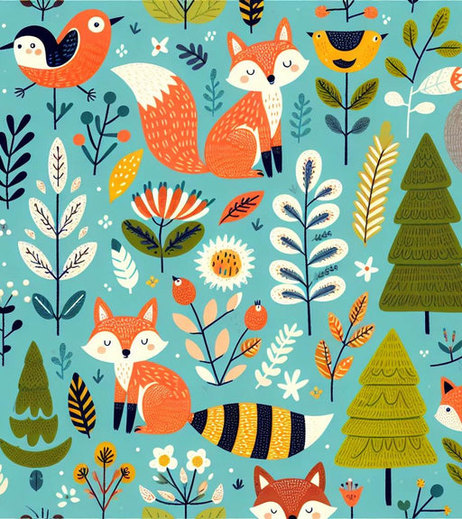 LePapierPeintCe Papier peint renard joyeux et coloré est une célébration de la forêt, avec ses renards espiègles, ses racoons curieux et sa diversité végétale. ...