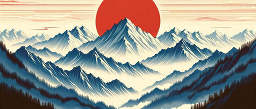LePapierPeintTransformez votre espace avec notre papier peint japonais mettant en scène une majestueuse montagne et un soleil rouge vibrant. Ce motif saisissant...
