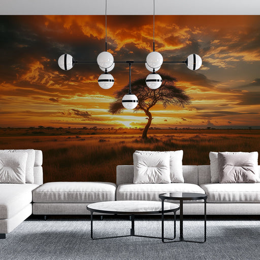 LePapierPeintÉvoquant la chaleur des plaines africaines, cette illustration murale présente un majestueux lion sous un acacia solitaire. Les teintes ardentes de...