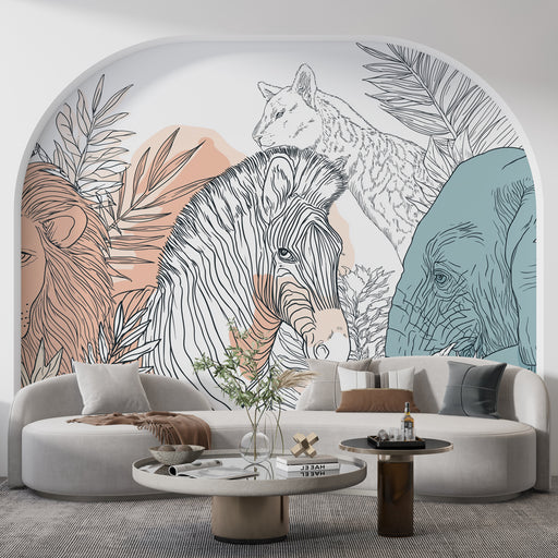LepapierpeintNotre papier peint affiche un adorable motif de têtes d'animaux, incluant des lions, des éléphants et des koalas, dans des tonalités pastel sur un ...