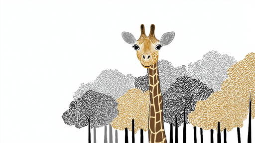 LePapierPeintLe papier peint Savane Giraffe présente une majestueuse girafe se tenant au milieu d'une savane stylisée. Les illustrations délicates des arbres et...