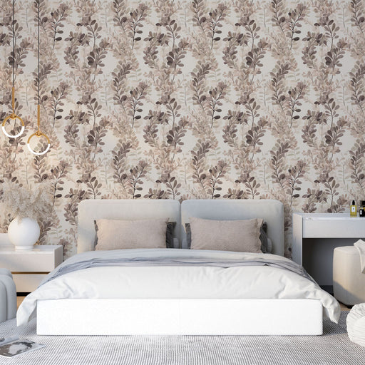 LepapierpeintCe papier peint présente un motif floral vintage où des fleurs roses et brunes s’entrelacent avec élégance sur un fond beige doux. Les détails minu...