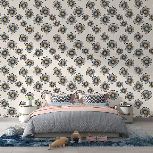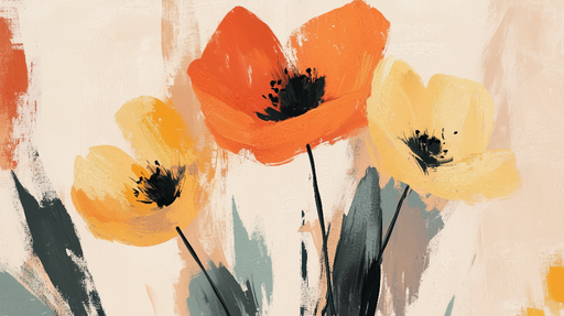 Art'loloCe papier peint floral présente une magnifique illustration abstraite de fleurs aux tons orange, jaune et noir. Les couleurs vives et les coups de ...