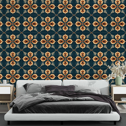 Afficher tous les détailsPapier peint fleuri vintage | Fleurs vives sur fond bleu nuit