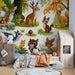 Ce papier peint forêt enchantée présente une illustration charmante d'animaux de la forêt au cœur d'un décor naturel et coloré. Parfait pour une chambre d'enfant, il inclut des cerfs, écureuils, et oiseaux entourés de feuillage automnal et de champignons.