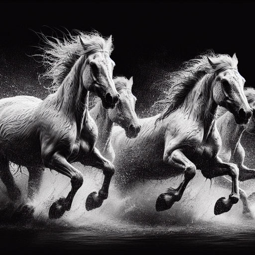 LePapierPeintCe Papier peint cheval saisissant en noir et blanc présente un trio de chevaux sauvages, capturés dans un mouvement dynamique et puissant. La vital...