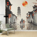 Papier peint paysage traditionnel | Scène avec lanternes et pagode