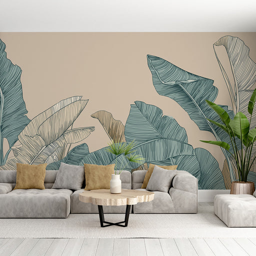 Papier peint feuillage vert | Feuilles de bananiers et fond beige