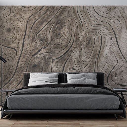 Découvrez notre papier peint effet bois aux motifs de tourbillons organiques, idéal pour apporter une touche élégante et naturelle à votre intérieu...