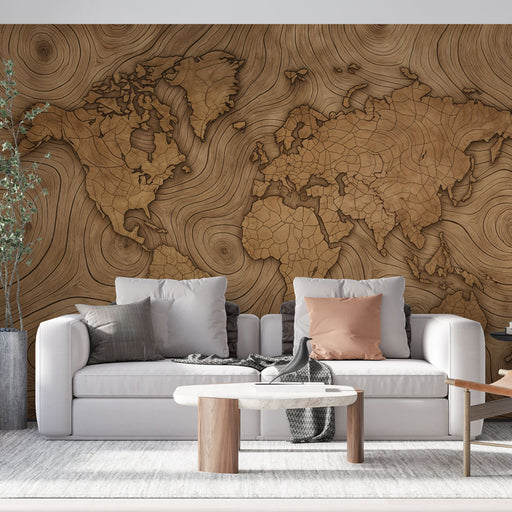 Papier peint Carte du Monde en Bois | Décoration Murale Élégante