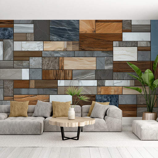 Découvrez notre papier peint mosaïque avec un mélange sophistiqué d'effets bois et marbre. Parfait pour ajouter du caractère à votre intérieur, ce ...
