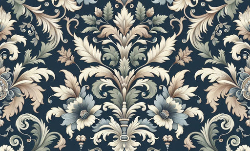 Afficher tous les détailsPapier peint fleuri vintage | Style fleurs de lys sur fond bleu nuit