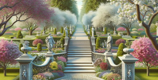Afficher tous les détailsPapier peint trompe l'œil | Allée principale d'un jardin royal avec statues