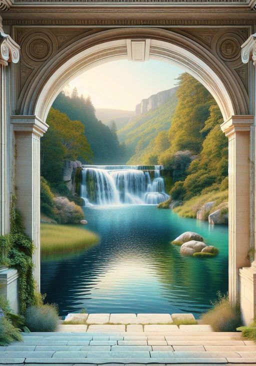Afficher tous les détailsPapier peint trompe l'œil | Arche antique et magnifique relief avec cascade