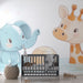 Papier peint animalier | Petit éléphant et girafe enjoués