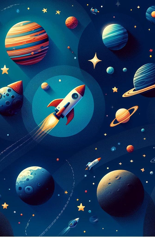 Papier peint espace | Décorations célestes avec fusée et planètes