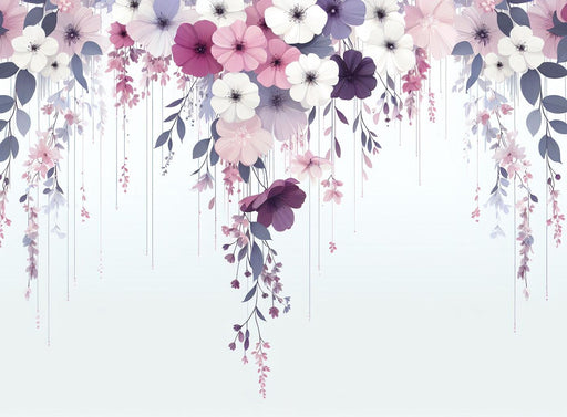 Afficher tous les détailsPapier peint fleuri rose | Tombée de fleurs violettes, roses et blanches