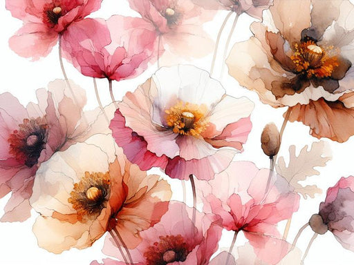 Papier peint fleuri rose | Tombée de fleurs violettes, roses et blanches