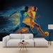 Le design unique combine des tons froids et chauds, illustrant des joueurs en pleine course, idéaux pour une décoration moderne dans une chambre ou une salle de jeux.