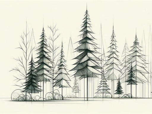 Papier peint arbre | Esquisse d'une forêt de sapins