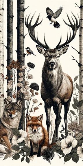 Papier peint cerf | Illustration vintage animaux de la forêt