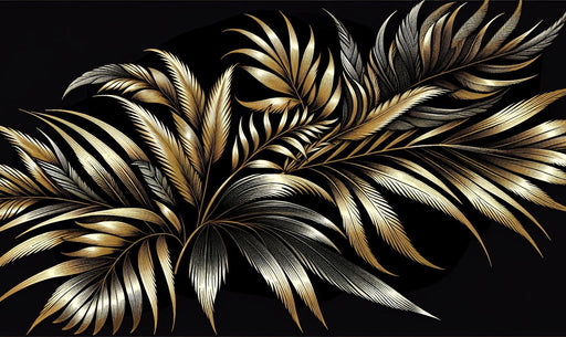 LePapierPeintCe papier peint noir et or est un spectacle visuel saisissant, où de grandes palmes dorées se déploient avec audace sur un fond noir intense. Le mo...