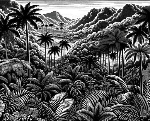 LePapierPeintPlongez au cœur d'un paysage envoûtant avec ce Papier peint jungle noir et blanc Végétation et relief montagneux. Les nuances contrastées créent un...