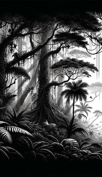 LePapierPeintTransformez votre espace en une jungle mystérieuse et élégante avec notre Papier peint jungle noir et blanc Lianes et Palmiers, mettant en scène de...